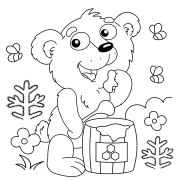 Coloring Page Outline Of Cartoon Little Bear With Barrel Of Honey Posters For The Wall Posters School Preschool Printable Myloview Com